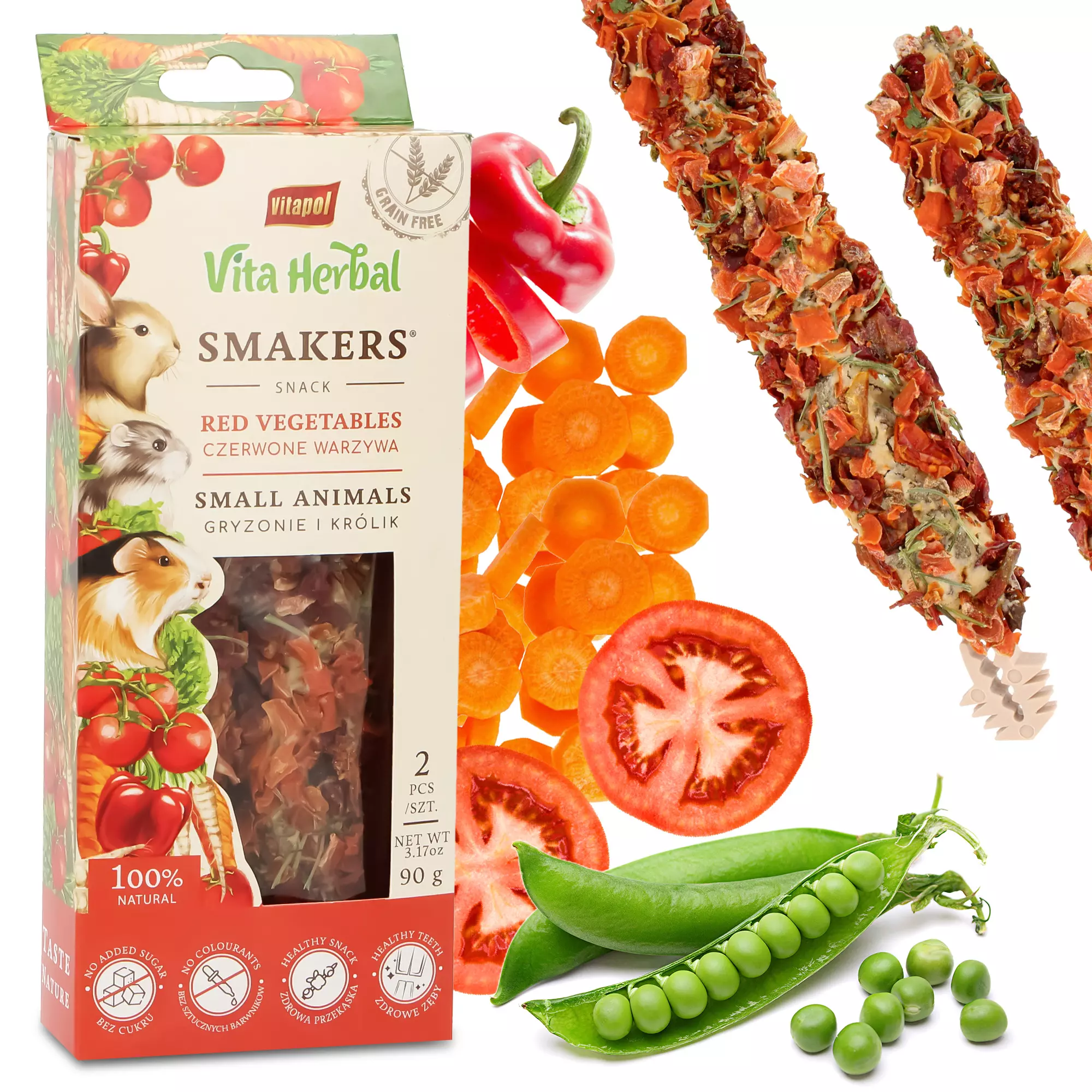 Twardość sprzyjająca uzębieniu - smakers dzięki podgryzaniu pozwala na regularnie ścieranie siekaczy, co jest ważne dla gryzoni i królików.