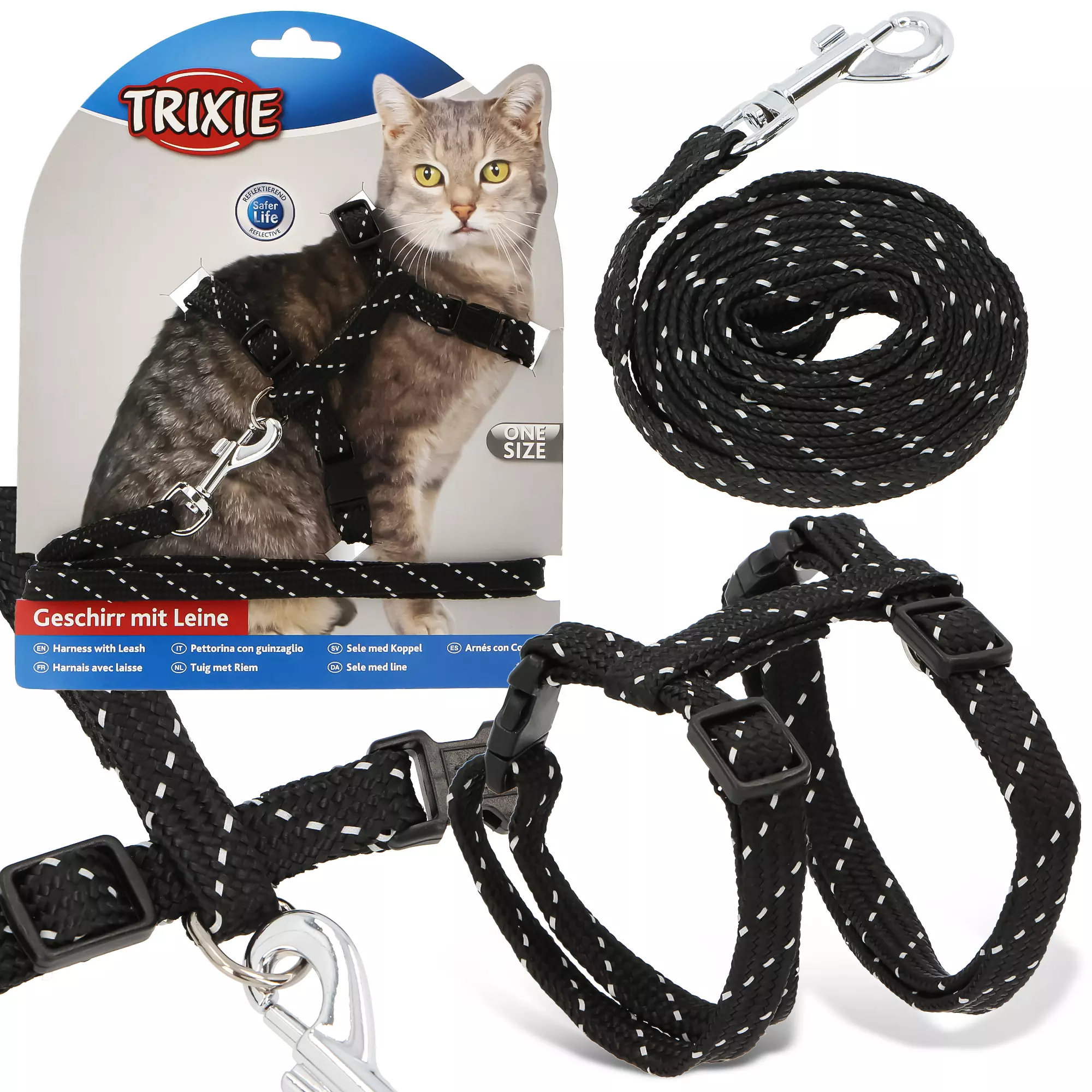 Na uwagę zasługuje także płynna regulacja szelek i długość dołączonej smyczy. Dzięki temu można dopasować akcesorium do ciała i wielkości mruczka, a także zapewnić sobie wygodną przechadzkę.